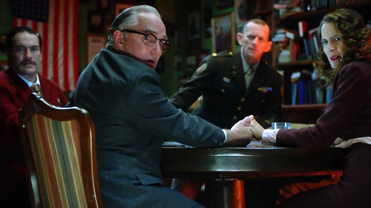 Камерный политический детектив с вмешательством потусторонних сил — о мире сразу после Второй Мировой. Поздней осенью 1945 года пятеро друзей-ветеранов собираются в бруклинском доме, чтобы утешить одного из них после суицида жены. План скорбящего мужа — устроить спиритический сеанс и вызвать покойную на последний разговор. В особняке начинают происходить странные вещи: гаснут свечи, гудит подвал, дух ушедшей прорывается с того света, чтобы рассказать секрет своей гибели. Но вместо секрета гибели выяснится немало секретов из жизни гостей во время войны. Спойлер: иглы под ногти, немецкий язык и зомби тоже будут на собрании достопочтенных ветеранов. На вопрос «Когда уже закончится эта война?» ответов нет.