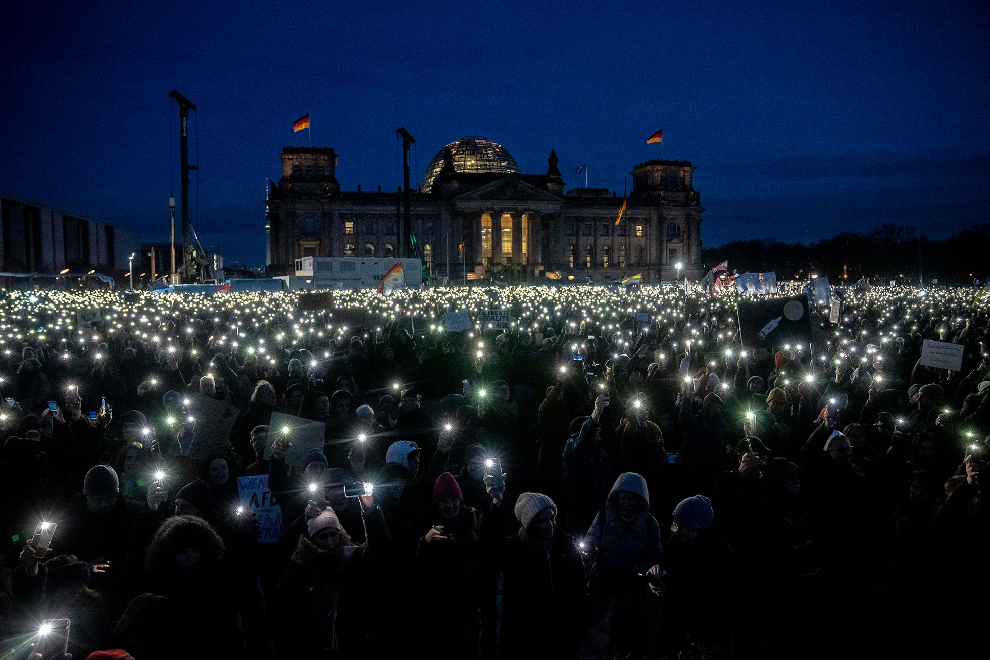 Эта информация вызвала в Германии чуть ли не самые массовые протесты за последние десятилетия: в выходные с 19 по 21 января на улицы немецких городов против праворадикалов и их планов вышли протестовать до 1,4 миллиона человек. 100-тысячная демонстрация прошла в Берлине, 80-тысячная — в Гамбурге, 40-тысячная — в Дрездене. В некоторых городах митинги пришлось преждевременно завершить из-за того, что на них пришло слишком много людей.