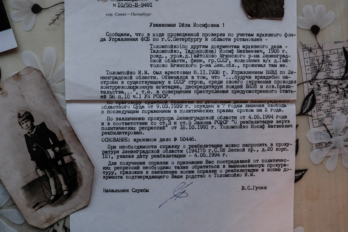 В 1943-м нас хотели депортировать в Финляндию. Мама хотела, а папа не поехал. И мы остались. Если бы поехали, то, может, и выжили все.