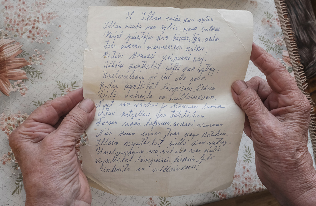 Старинная финская духовная песня Kodin kynttilät 1942 года. Ее знало все старое поколение ингерманландцев. В семьях была традиция петь этот гимн на Рождество, день рождения и на другие праздники, когда вся семья и близкие друзья собирались вместе Когда вечерний покой укрывает землю,