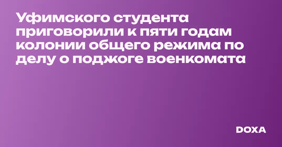 Уфимского студента приговорили к пяти годам колонии по делу о поджоге военкомата