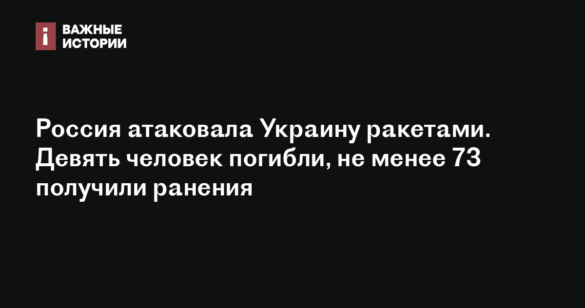 Россия атаковала Украину ракетами. Девять человек погибли, не менее 73 получили ранения