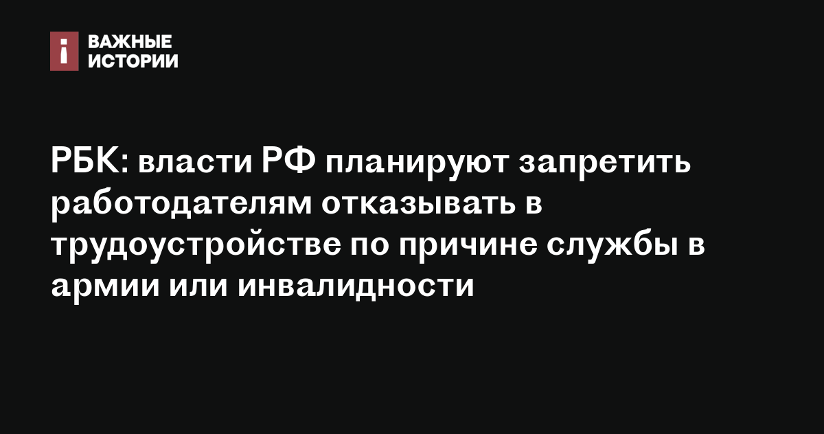 РБК: власти РФ планируют запретить работодателям отказывать в трудоустройстве по причине службы в армии или инвалидности