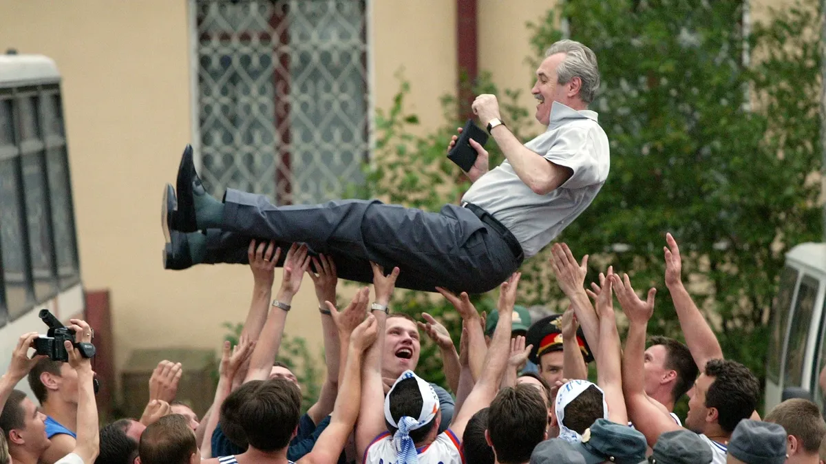Казань, 2002 г., после финала Суперлиги. На руках болельщиков тренер Сергей Белов. Фото: Спорт-Экспресс / ИТАР-ТАСС