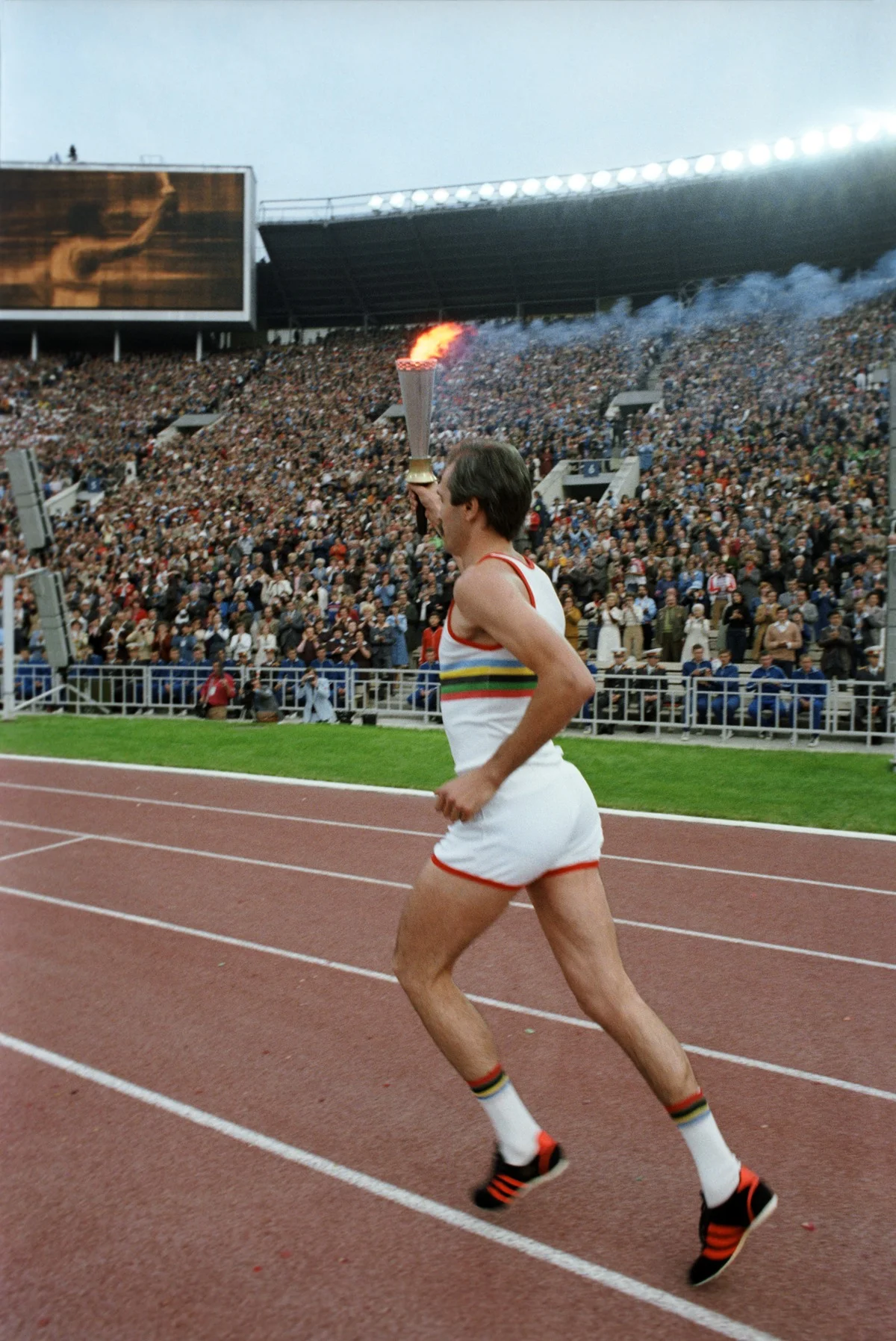 Торжественное открытие XXII летних Олимпийских игр. На беговой дорожке стадиона баскетболист Сергей Белов. Фото: Александр Яковлев / Фотохроника ТАСС