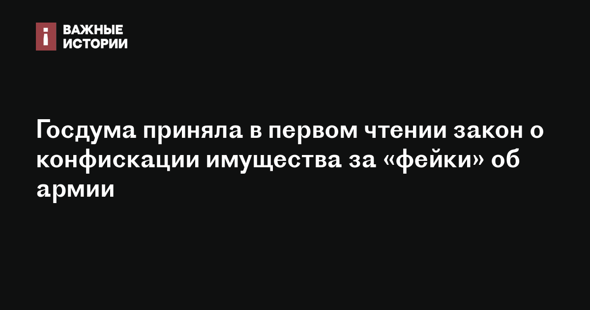 Госдума приняла в первом чтении закон о конфискации имущества за «фейки» об армии