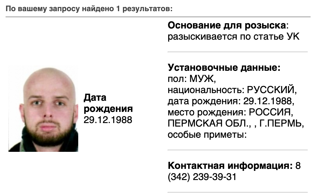 Скриншот из базы розыска МВД