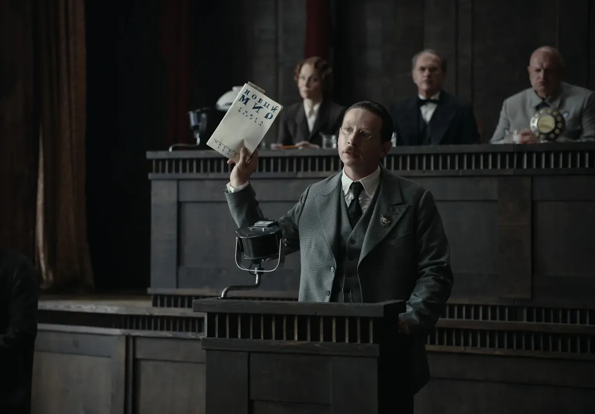 Итак, успешный писатель (Евгений Цыганов) оказывается в центре большого скандала. Спектакль «Пилат» по его пьесе накануне премьеры снимают с репертуара, декорации разрушают по решению Наркомпроса. Коллеги по литературному цеху дружно и пламенно громят его на собрании за вредоносную вещь. Тираж «Нового мира» идет под нож. Редактор публично кается за проявленную политическую близорукость. Критик Латунский (Дмитрий Лысенков) и Барон Майгель (Алексей Гуськов) обвиняют нераскаивающегося писателя в апологии ревизионизма и прочих измах, которые следует выжигать каленым железом.