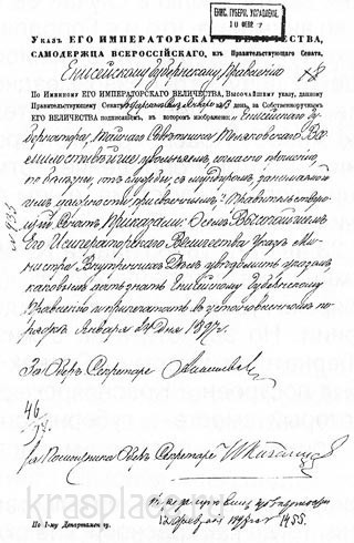 Хотя в его правление совершились важные перемены. Через Красноярск прошла Транссибирская железная дорога, а незадолго перед этим – 1 июля 1891 года – город почтил своим визитом цесаревич Николай Александрович Романов, будущий последний император России.
