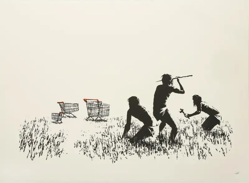 Очередное высказывание на тему подчинения людей капиталистическим взглядам. Три пещерных человека с примитивным оружием охотятся не на диких животных, а на «стадо» тележек из супермаркета. Запертые в городах, не имеющие возможности выращивать еду или добывать ее в естественных условиях, наши жизни зависят от продуктов, предлагаемых магазинами.