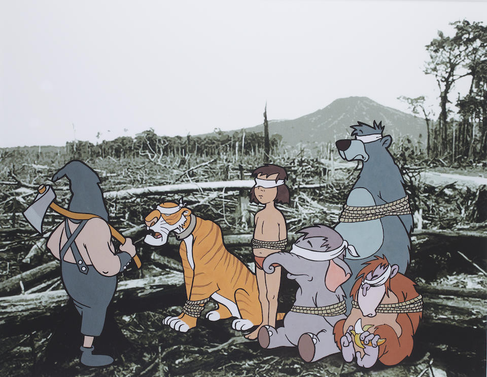 Создание картины было приурочено к кампании британского Гринпис, призванной привлечь внимание к проблеме глобальной вырубки лесов и борьбе с незаконными лесозаготовками. Изображение использовалось на плакатах, рекламных щитах и открытках Гринписа в 2001-2002 годах, несмотря на попытки Диснея, обладающего авторскими правами на Маугли и «Книгу джунглей», пресечь эту акцию.