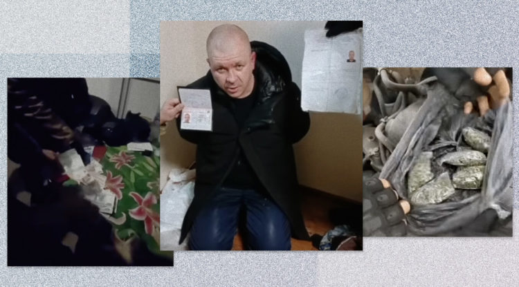 На этом же видео есть допрос водителя такси, который якобы доставлял наркотики. Кроме того, военные обыскали дом еще одного человека, у которого также нашли пакет с марихуаной. На видео он говорит, что покупает наркотики у кума — инспектора ГИБДД.