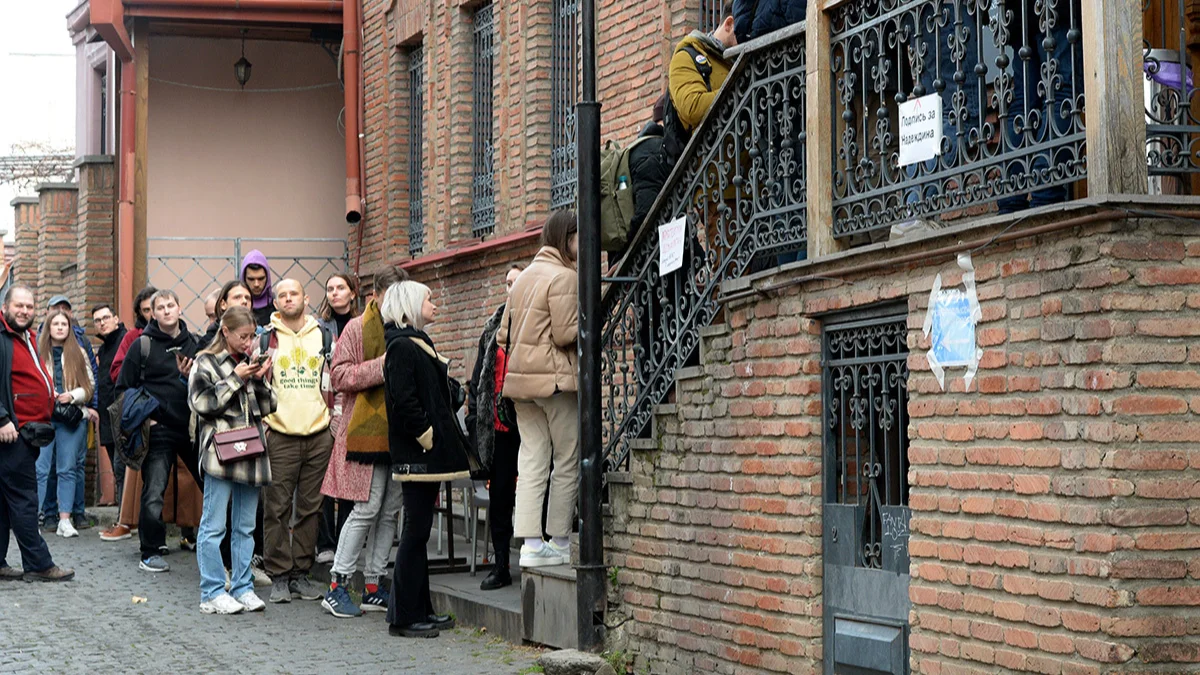 Репортаж из очереди на пункт сбора подписей за Надеждина в Тбилиси