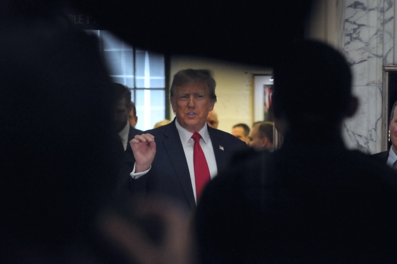 Дональд Трамп покидает здание суда в Нью-Йорке