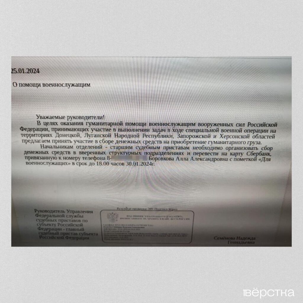 Судебных приставов в Тверской области заставляют сдавать деньги для российских военных в Украине - Вёрстка