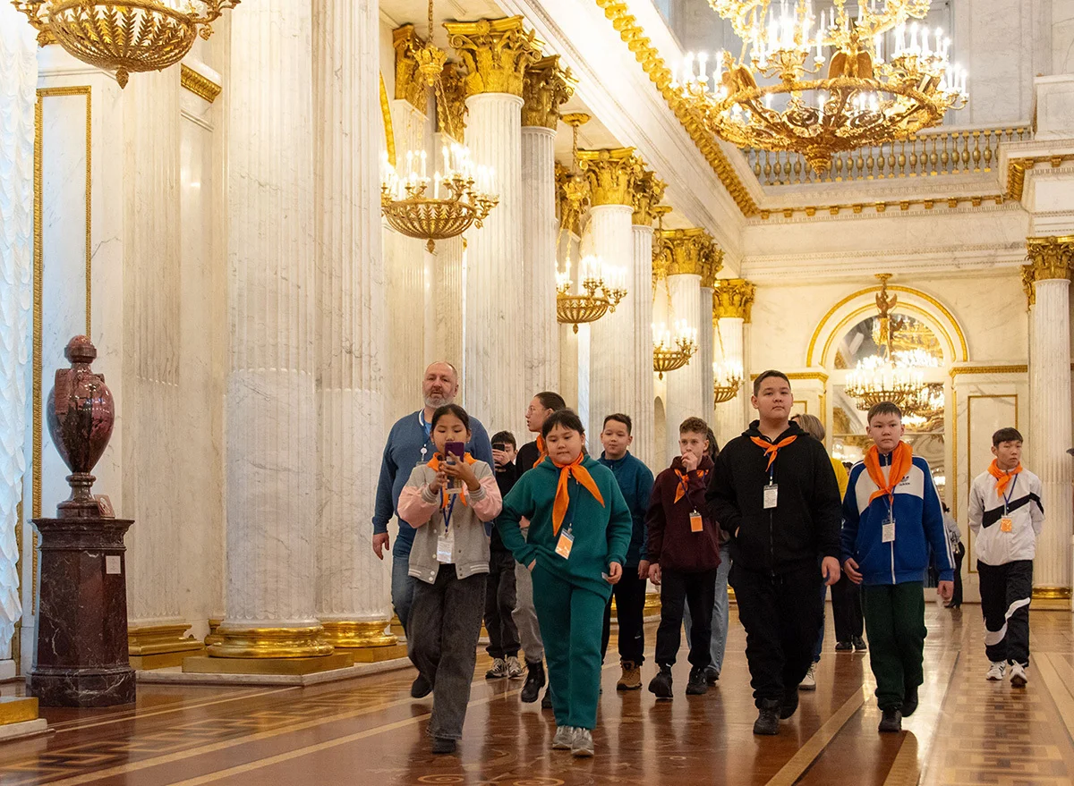 Вернулись в Эрмитаж и школьные «агитпоезда» — проект, по которому ребята из дальних регионов приезжают в столичные музеи. Но значительную часть программы занимают «патриотические события», посвященные войнам, в том числе и нынешней. Участники агитпоезда привезли 4 тысячи оберегов для военных, а на одну из встреч пригласили генерал-полковника в отставке, который «неоднократно навещал в окружном госпитале раненых участников СВО» и «передал для воинов три современных телевизора».