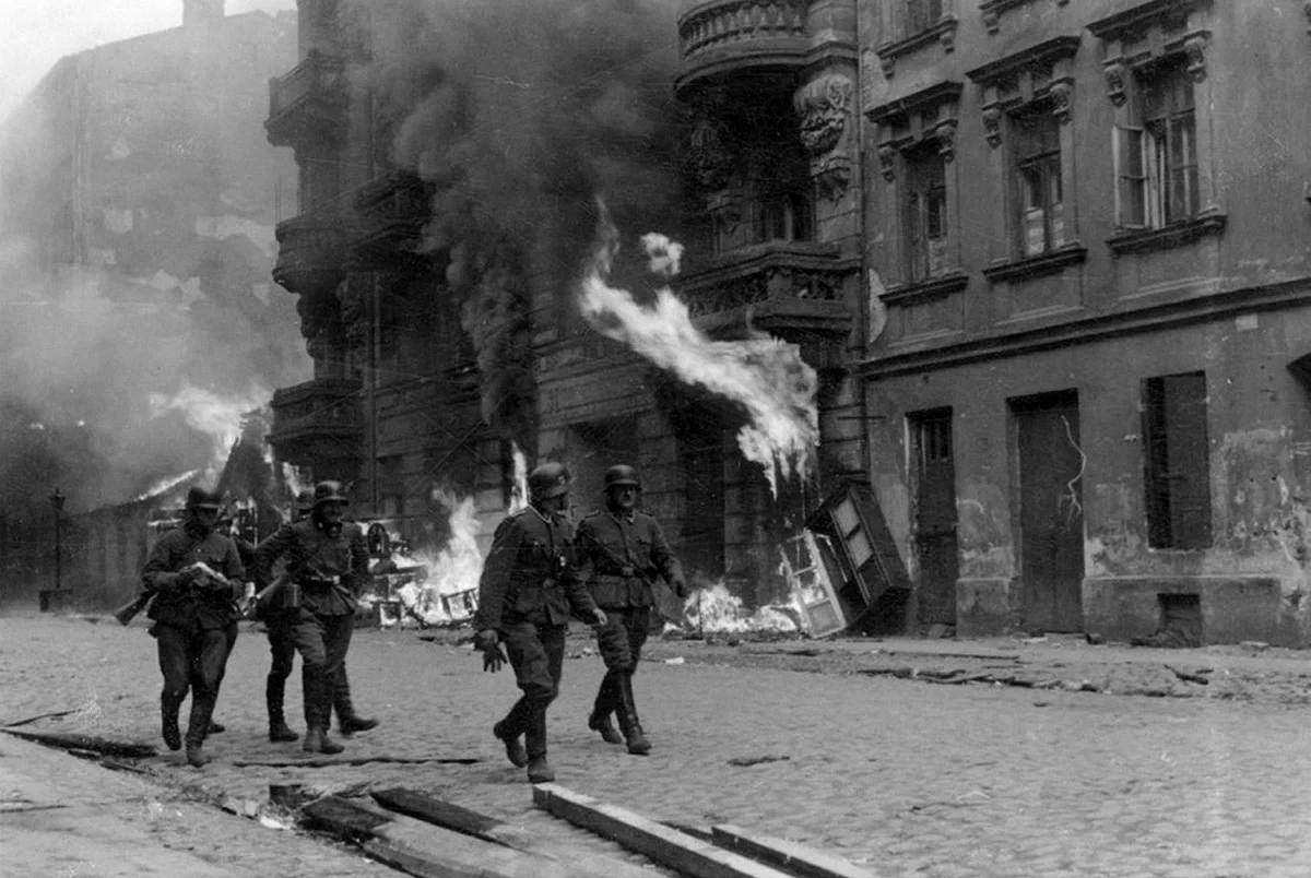 В зале, где проходили торжества, у меня было ощущение, что я — одна из очень немногих, кто собственными глазами видел этот кошмар: горевших заживо евреев. Видела это через занавеску из окна в доме пани Хелены. (Дом, в котором я пряталась у пани Хелены, стоял напротив гетто, в 50 метрах от стены.) Видела, как женщина выбрасывает из окна пылающего дома, с третьего этажа, сверток с ребенком на мостовую. Ночью я не могла спать, лежа на удобной кровати в доме пани Хелены, — прислушивалась, как взрывался дом за домом в гетто.