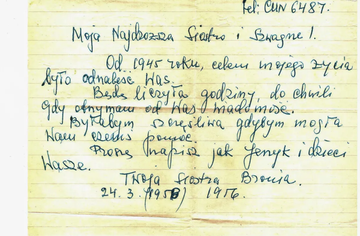 Сегодня годовщина смерти нашего брата Зыгмуся. Какие сюрпризы преподносит жизнь! Он был младшим из нас, а я за него живу. Не знаю, известна ли тебе деталь из жизни его жены. Как ты наверняка помнишь, у них была одна доченька. Девочка не была похожа на еврейку. Жена Зыгмунта хотела спасти ребенка. Она вышла с ребенком из гетто и хотела оставить где-то девочку, хотя бы на улице. К сожалению, их схватили, посадили в тюрьму, дочку казнили как еврейку. Это всё случилось, когда Зыгмунт был еще жив. Бедный Зыгмусь, он был такой молодой! Только начал жить.