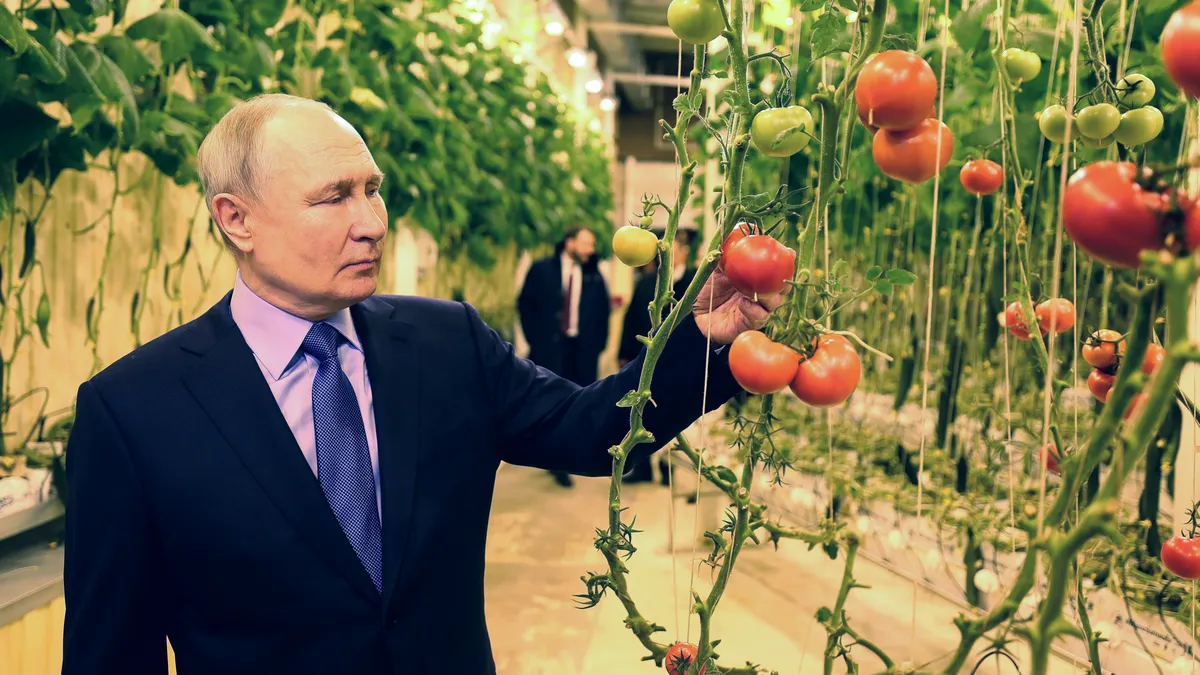 Vladimir Putin inspects tomatoes in Russia’s far eastern Chukotka region, 10 January. Photo: EPA-EFE / GAVRIIL GRIGOROV/ SPUTNIK / KREMLIN / POOL