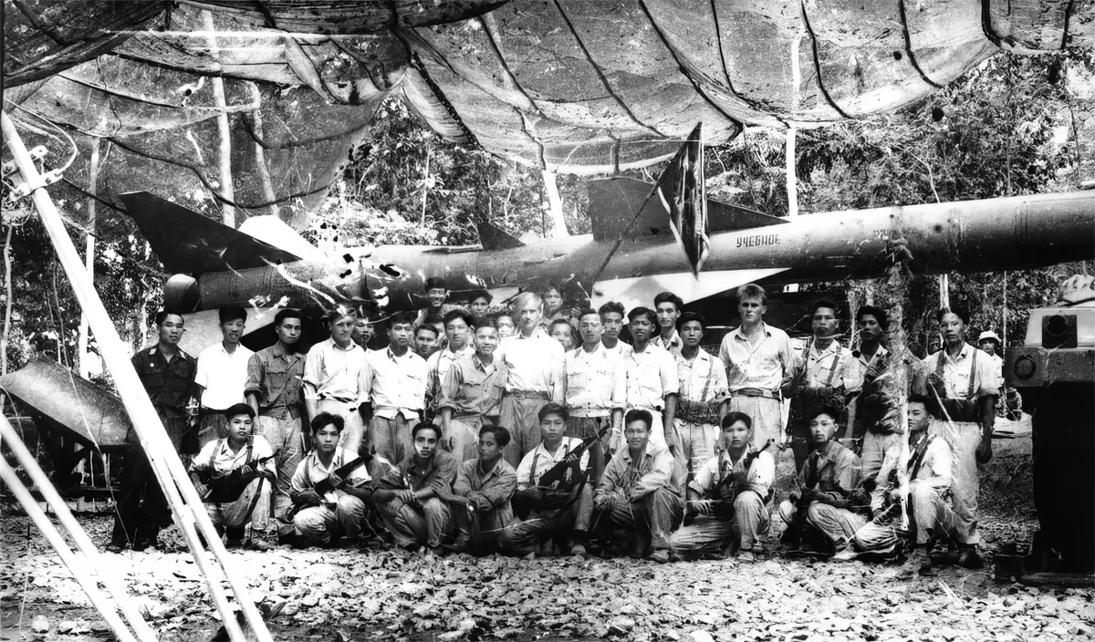 Советские воины-зенитчики с офицерами 7-го зенитно-ракетного полка ВНА (в центре), апрель 1967 года. Фото: Ивчин А. И. / Межрегиональная общественная организация ветеранов войны во Вьетнаме / Wikimedia