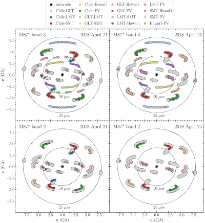 Теперь Event Horizon Telescope опубликовал новые изображения M87*, используя данные наблюдений, собранные уже в апреле 2018 года. Благодаря недавно введенному в эксплуатацию Гренландскому телескопу и значительно оптимизированной скорости записи по всей матрице наблюдения 2018 года дают новое представление об источнике — независимо от первых наблюдений в 2017 году.