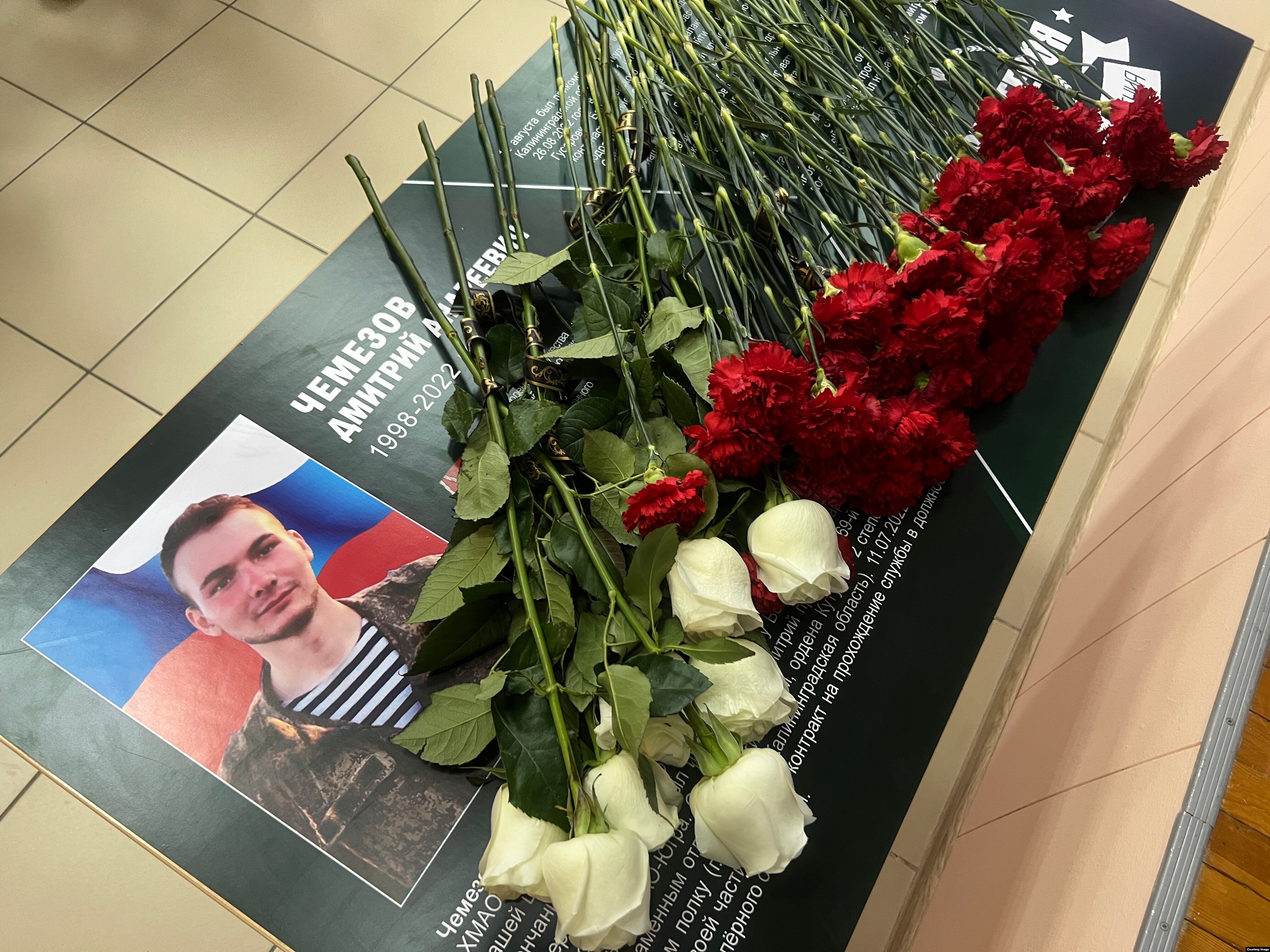 А вот в честь матроса Дмитрия Чемезова в школе №3, где он учился, открыли "парту героя". Чемезов ушел в армию срочником в 2021 году, в июле 2022-го заключил контракт, 6 сентября 2022 погиб в Харьковской области.