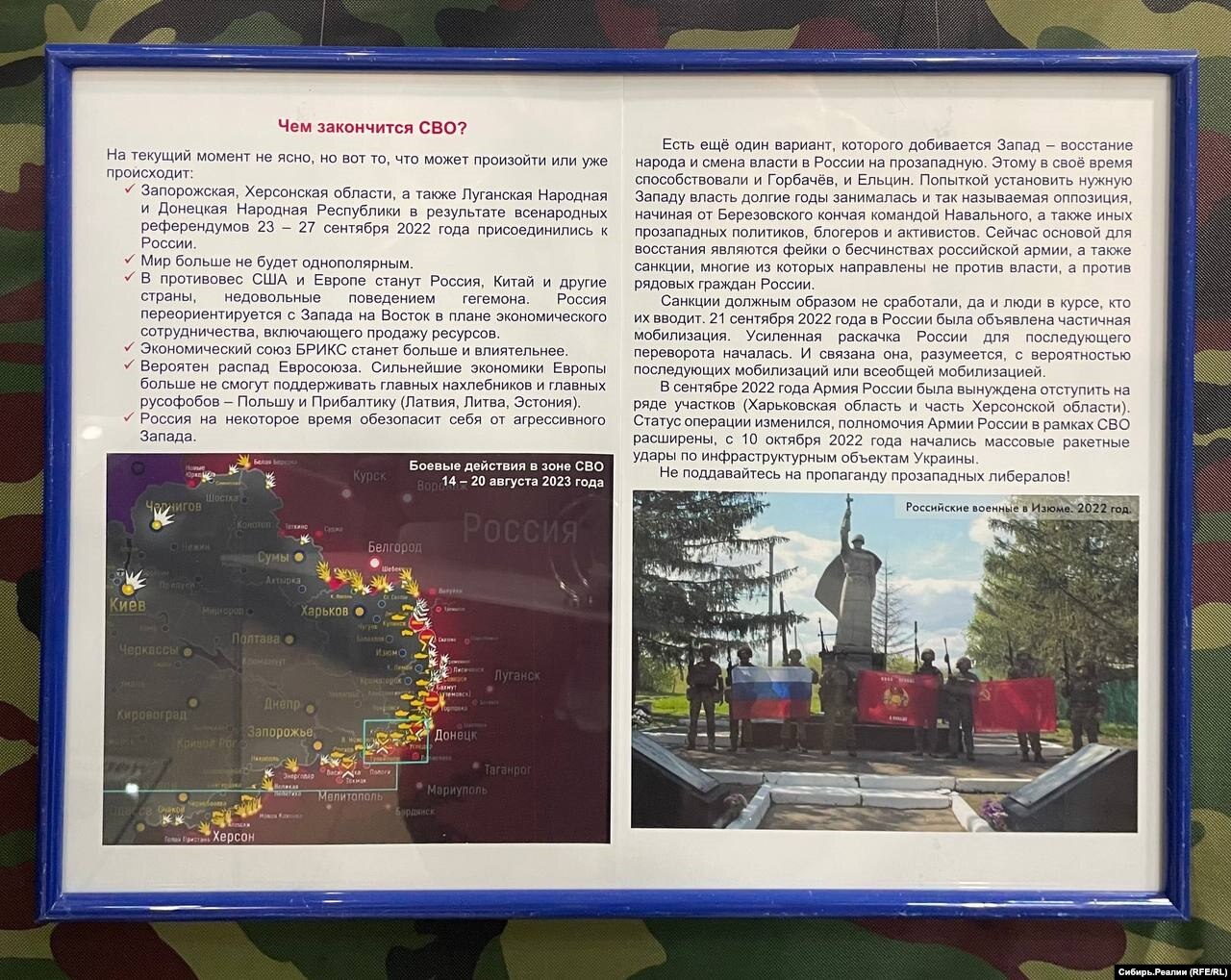 С началом войны в слове "музей" на страничке в соцсетях появилась буква Z, а в самом музее организовали экспозицию, посвященную войне в Украине. На стендах – классика российской пропаганды: тезисы о том, что "специальная военная операция покончит с однополярным миром", "Россия переориентируется на Восток", а Евросоюз развалится, потому что не сможет содержать "нахлебников в виде стран Прибалтики".