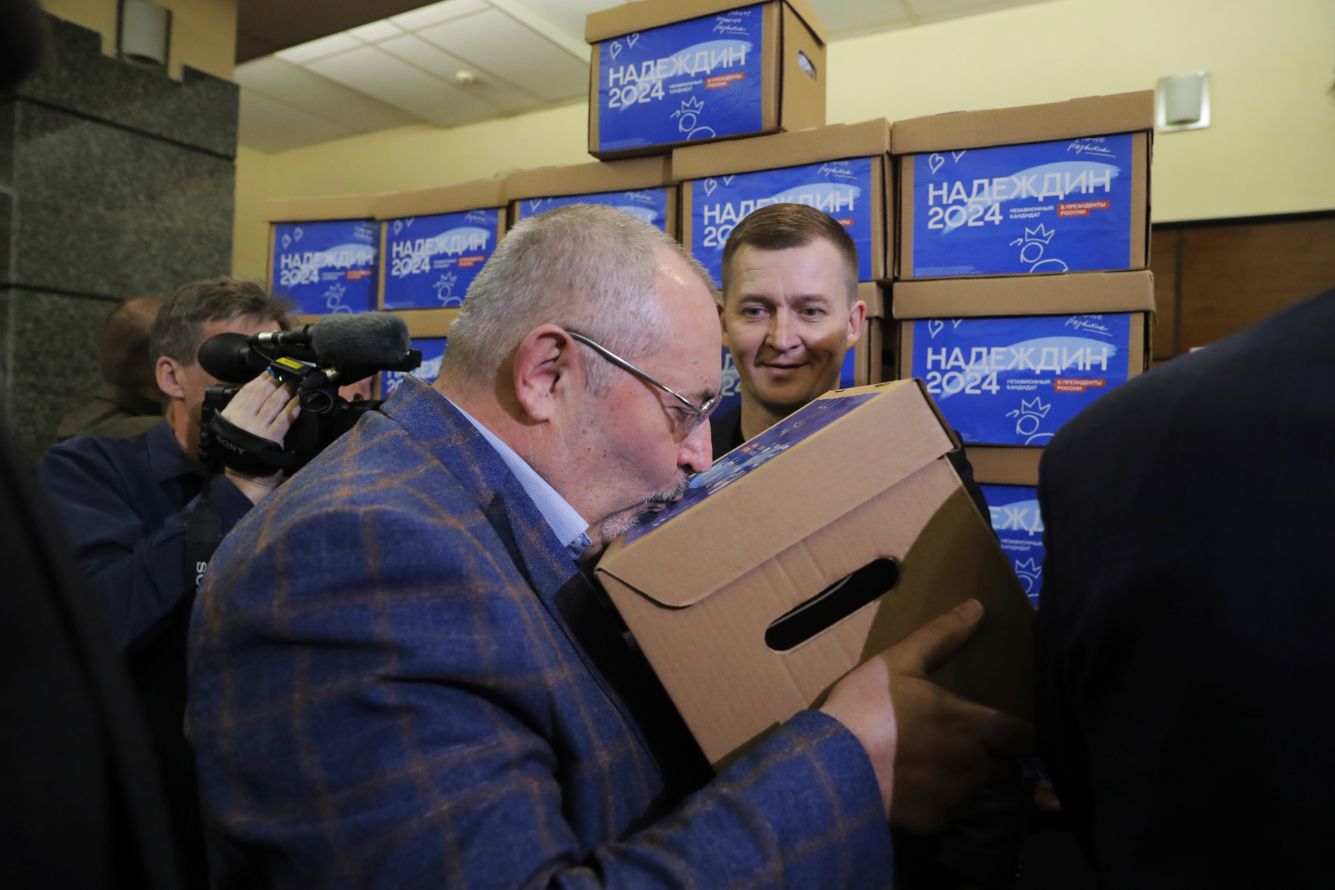 Dmitry Serebryakov / AP / Scanpix / LETA Boris Nadezhdin submits signatures in support of his candidacy to Russia’s Central Election Commission in Moscow, Russia. Wednesday, Jan. 31, 2024.