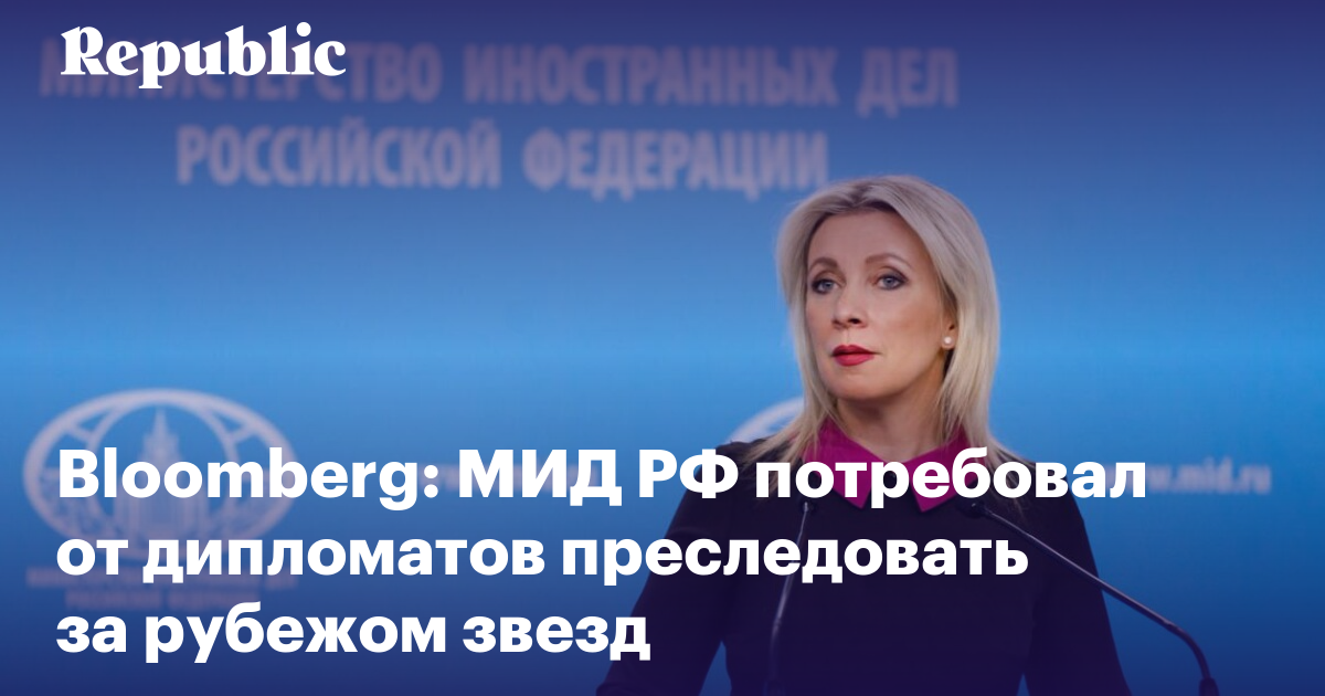 Министерство иностранных дел РФ потребовало от своих дипломатов преследовать российских знаменитостей и деятелей культуры, которые находятся за границей, выступают против политики Владимира Путина и войны в Украине. Об этом сообщает Bloomberg со ссылкой на два источника, знакомых с ситуацией. Публикация вышла на фоне скандала с рок-группой «Би-2», которую пытались депортировать из Таиланда в Россию.