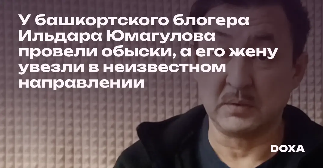 Силовики провели обыски доме башкортского блогера Ильдара Юмагулова в Баймаке и у него на работе в селе Тубинский. Они также забрали жену Юмагулова и «увезли в неизвестном направлении». Об этом блогер сообщил на своем ютуб-канале.