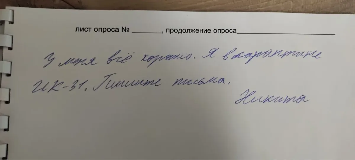 Как писала 25 января наша газета, в тот день Уварова вывезли из СИЗО-5 Канска, и вот — 9 дней неведения. Сегодня выяснилось, что еще 29 января Никита после транзитно-пересыльного пункта ИК-6 прибыл в 31-ю колонию общего режима; робу поменял на черную, сейчас в карантине, проблем и просьб у него пока нет. Ждет доступа к библиотеке и писем (эта колония, в частности, подключена к сервису «Зонателеком»). Не против работать, в воспитательной колонии Канска он учился и деревообработке, в ИК-31 есть профильный цех. С учебой, по всей видимости, будут сложности.