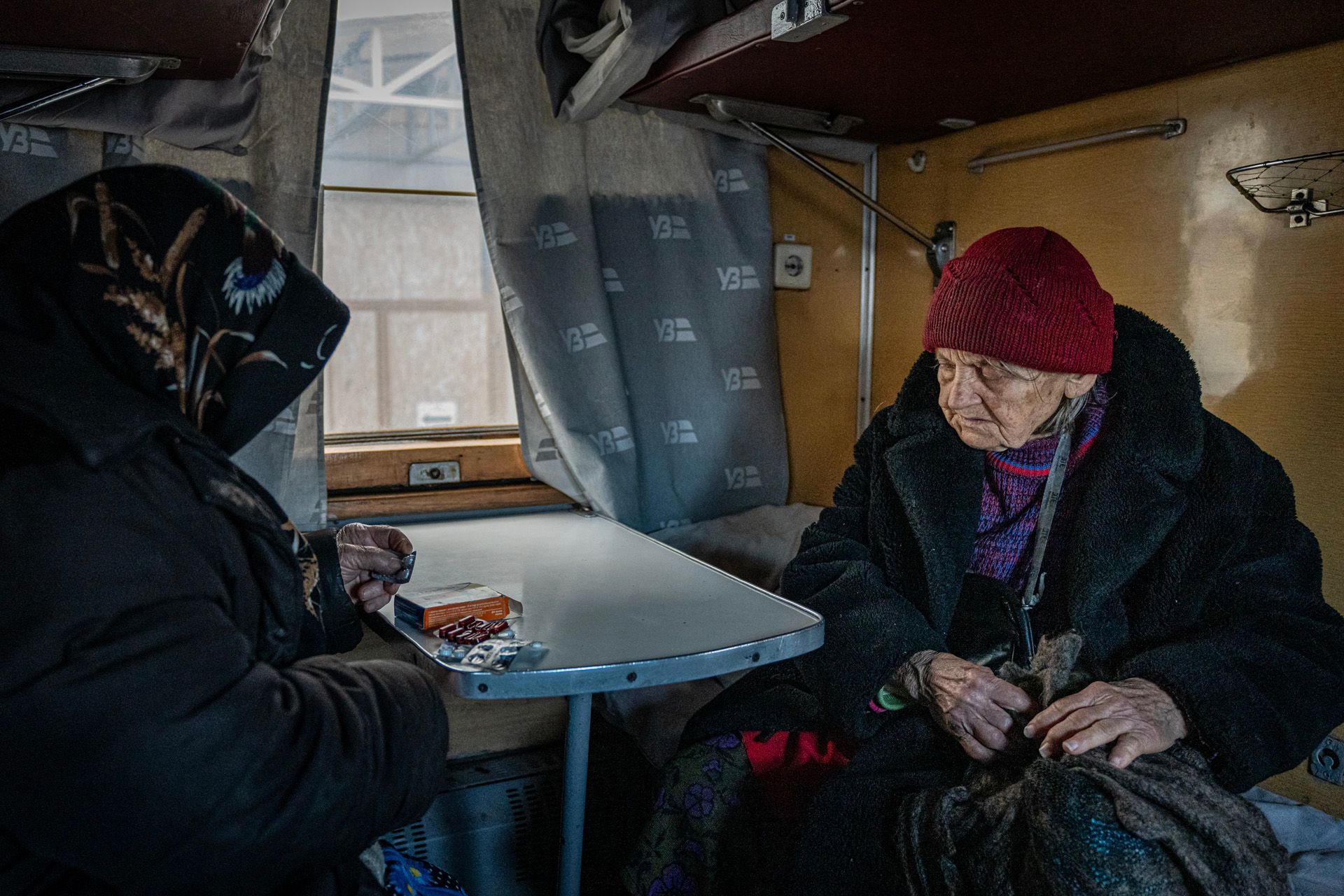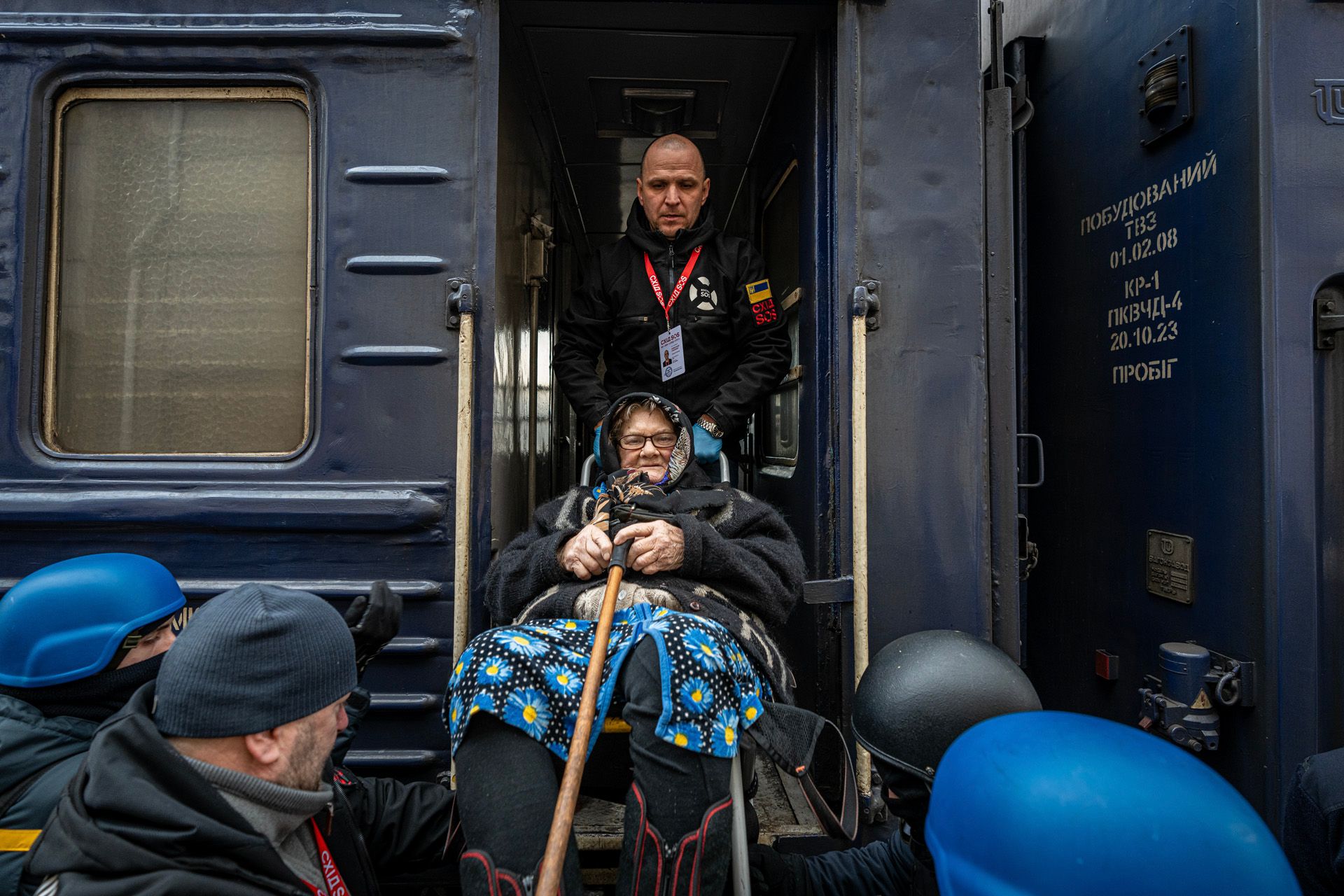 Покровск — город в Донецкой области, расположенный примерно в 50 километрах от аннексированного Донецка и в 40 километрах от линии фронта. Покровский район обстреливают каждый день. На этих кадрах — пожилая жительница Покровска, которую эвакуировала из города команда украинского благотворительного фонда «Восток SOS».