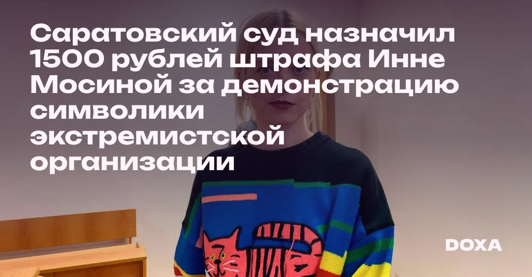 Ленинский районный суд Саратова назначил 1500 рублей штрафа фотохудожнице Инне Мосиной за демонстрациюч. 1 статьи 20.3 КоАП. символики экстремистской организации. На ее странице в инстаграме якобы были фотографии с радужными флагами. Это первое дело после признания ЛГБТ+ экстремистской организацией в России.