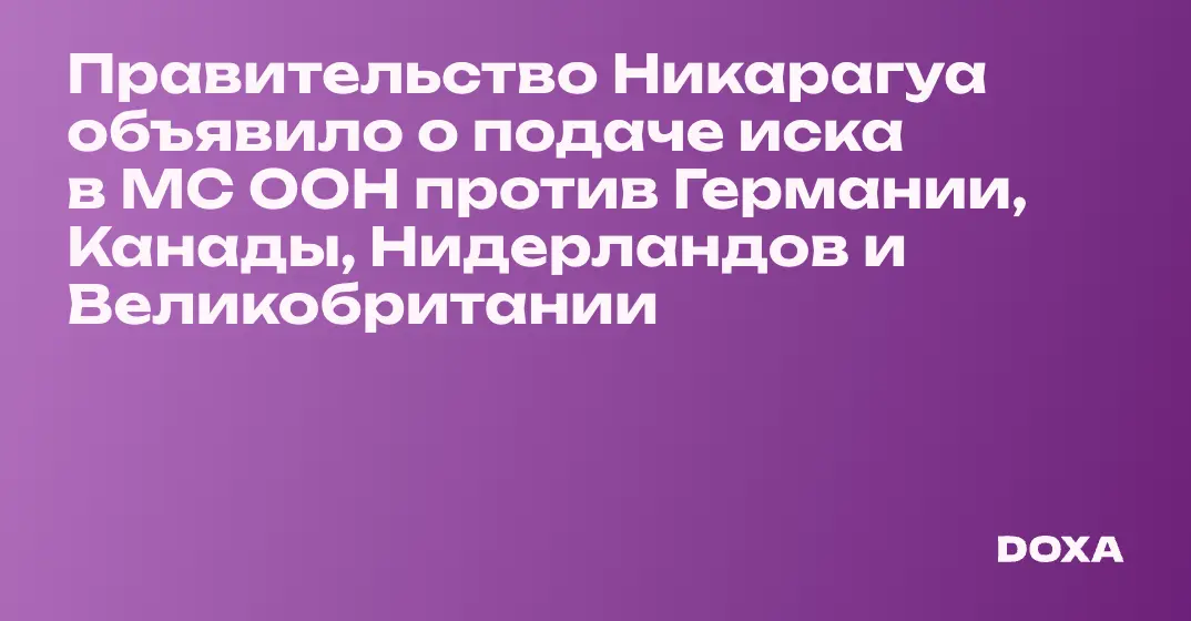 Правительство Никарагуа под руководством Даниэля Ортеги объявило о подаче иска в Международный суд ООН (МС ООН) против Германии, Канады, Нидерландов и Великобритании. Никарагуа обвиняет эти страны в соучастии в военных преступлениях Израиля в секторе Газа, указывая на поставки оружия израильской армии.