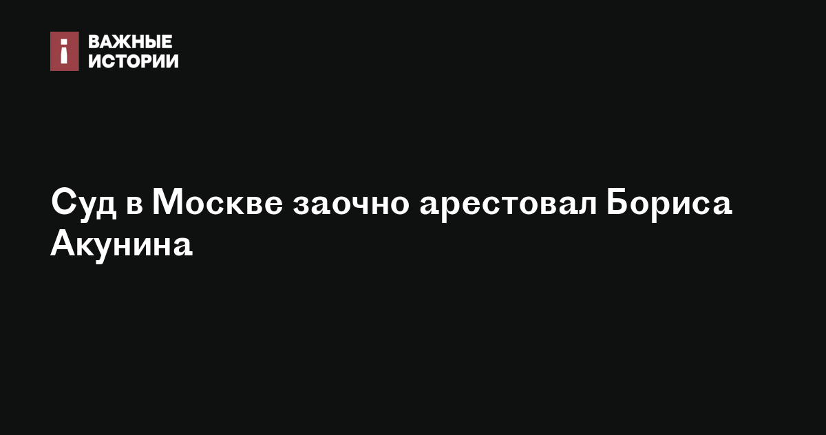 Басманный районный суд Москвы заочно арестовал писателя Бориса Акунина (Григория Чхартишвили) по делам об «оправдании терроризма» (ч. 2 ст. 205.2 УК, до семи лет колонии) и «фейках» о ВС РФ (п. «д» ч. 2 ст. 207.3 УК РФ, до 10 лет колонии), сообщает объединенная пресс-служба столичных судов.