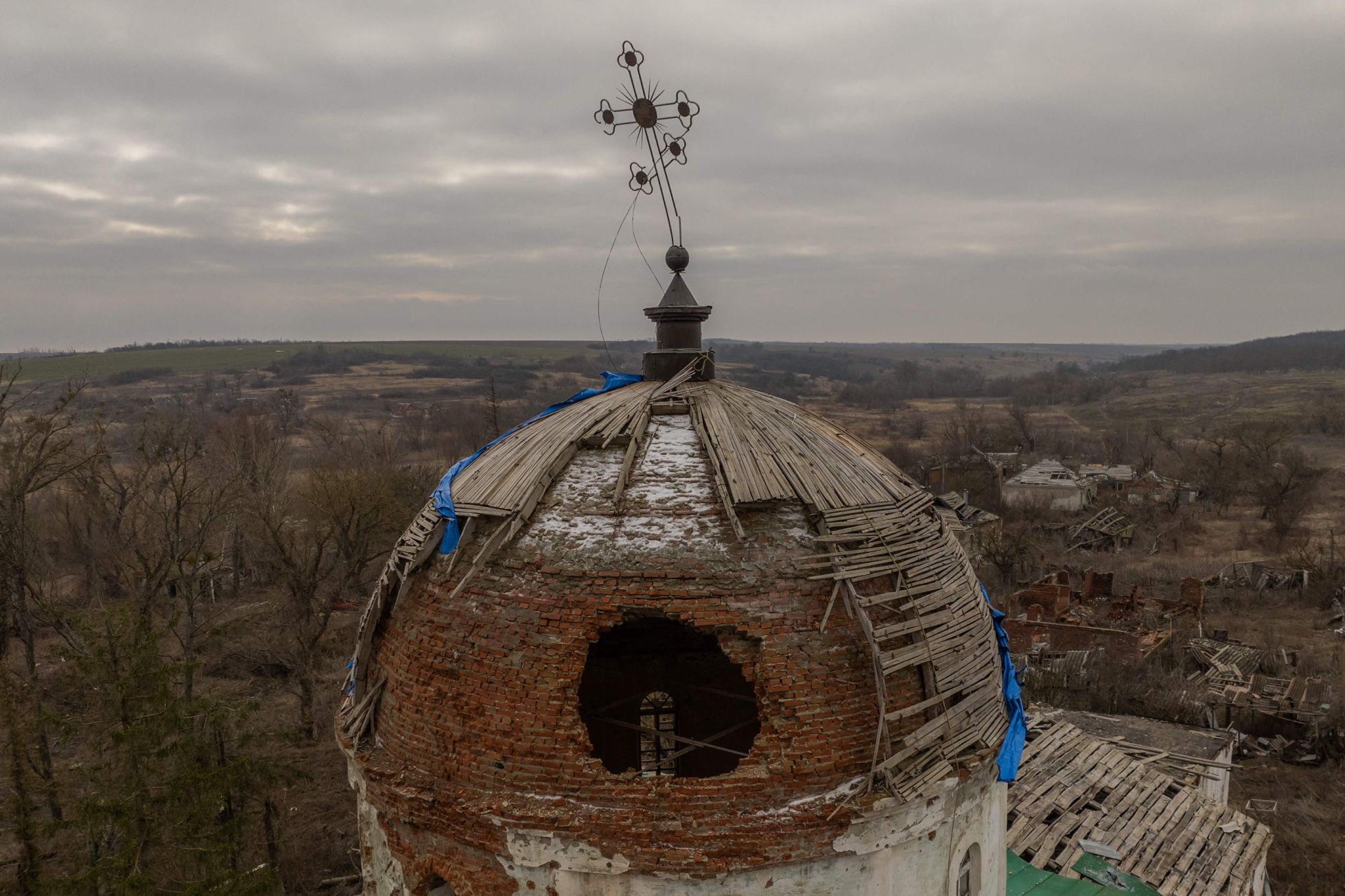 ВСУ освободили село Малая Камышеваха Харьковской области в ходе осеннего контрнаступления 2022 года. Во время оккупации, начавшейся в первые дни полномасштабной войны, российские военные обустроили в Свято-Троицком храме полевой госпиталь. Вот как выглядят окрестности Малой Камышевахи после боев.