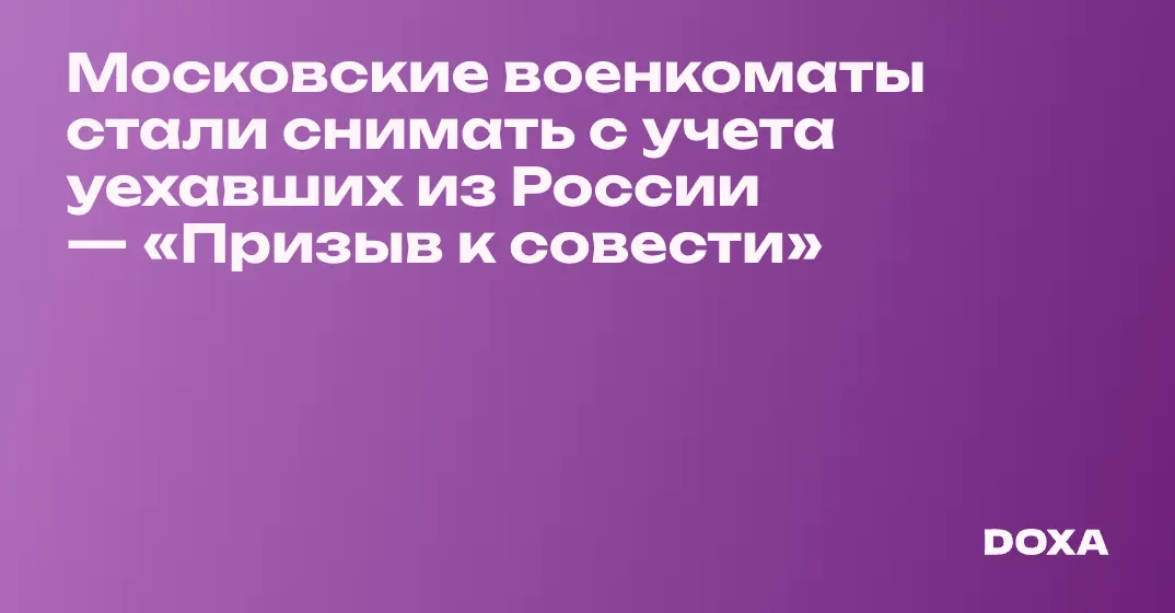 Московские военкоматы стали снимать с воинского учета уехавших из России мужчин, сообщат проект юристо:к и эксперто:к за сознательный отказ от военной службы «Призыв к совести». Ранее для этого требовали личную явку в военкомат.