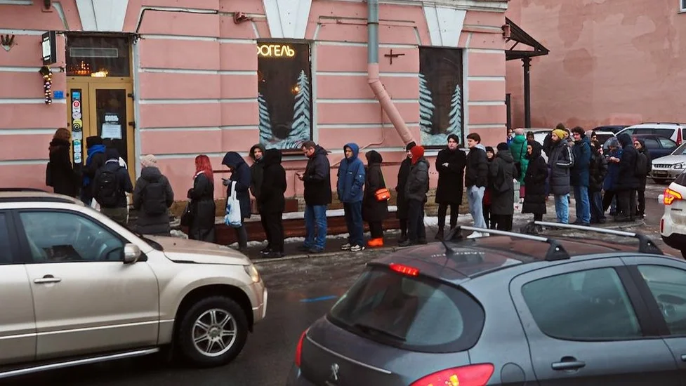Очередь желающих поставить подпись в пользу Бориса Надеждина как кандидата в президенты РФ. Фото: Александр Чиженок / «Коммерсантъ»