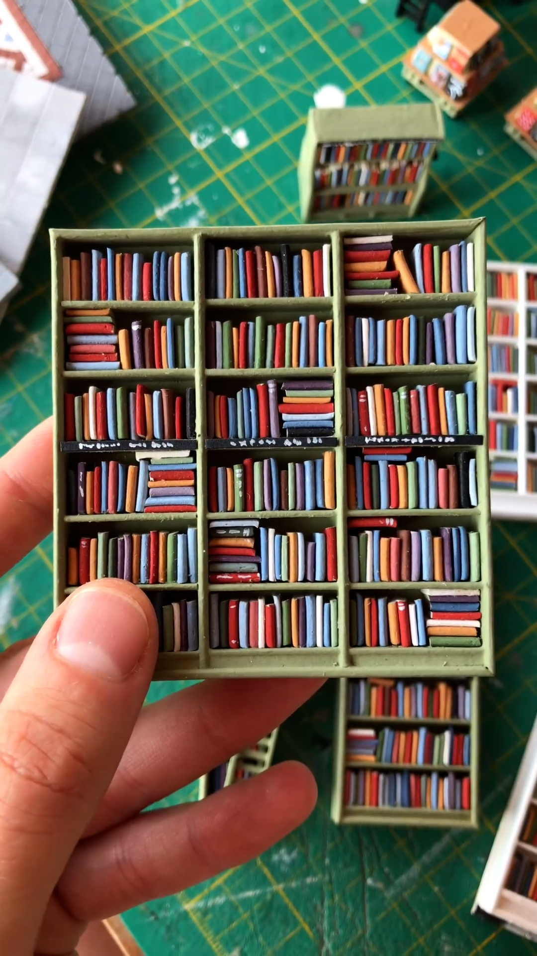 Перед Новым годом, еще год тому назад, мы договорились, что я сделаю фасад «Подписных» — потому что они прям разрослись и уже точно хочется отметить это дело миниатюрой. Фасад я сделала очень быстро, и тогда я предложила по минимуму хотя бы сделать книжечки, полочки и всё такое. А когда начала делать — не смогла остановиться.