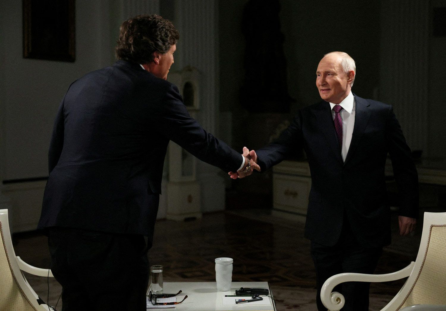 Бывший ведущий телеканала Fox News и любимец российской пропаганды Такер Карлсон опубликовал на своем сайте и в соцсети Х двухчасовое интервью Владимира Путина, ради которого журналист специально прилетел в Россию (российские независимые журналисты внутри страны работать не могут — их преследуют и сажают). В итоге Карлсон не задал практически ни одного острого вопроса, хотя обещал это сделать, — а Путину удалось вновь воспроизвести весь набор своих любимых тезисов, включая любительскую «историческую» речь об отношениях России и Украины (основные цитаты из интервью читайте здесь). Тем не менее интервью стало одной из главных новостных тем в России и мире. Вот что о беседе Путина и Карлсона пишут иностранные и российские СМИ.