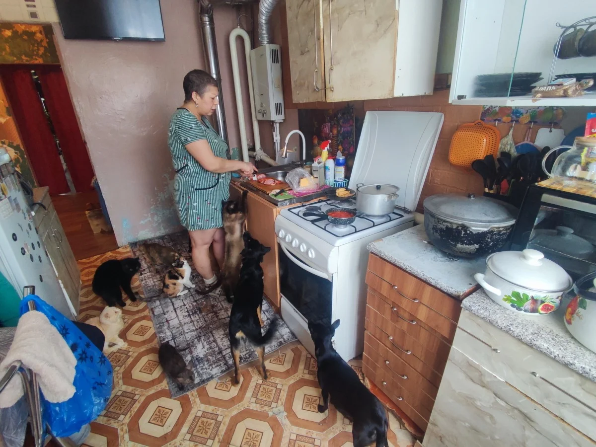 Кроме кошек, у Малышевых есть собаки — тоже подкидыши и найденыши. Но они большую часть времени проводят во дворе и в сенях. Только иногда скребутся в дверь, интересуясь насчет обеда. Лиана помешивает пшеничную кашу с салом в огромном казане. «Избалованные, — притворно ворчит хозяйка. — Без томата и зажарки не едят».