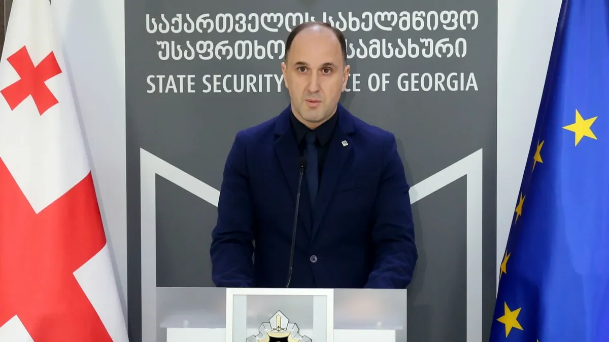 Руководитель Контртеррористического департамента Службы государственной безопасности Грузии Бача Мгеладзе во время брифинга, 5 февраля 2024 года. Фото: ssg.gov.ge