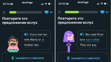The investigation was reportedly opened at the request of Novosibirsk-based human rights group Radetel, which objected to children using Duolingo to learn English being made to read aloud sentences such as “Ben and Peter love each other. They are gay,” and “Clara met her wife Maria at a lesbian bar.”