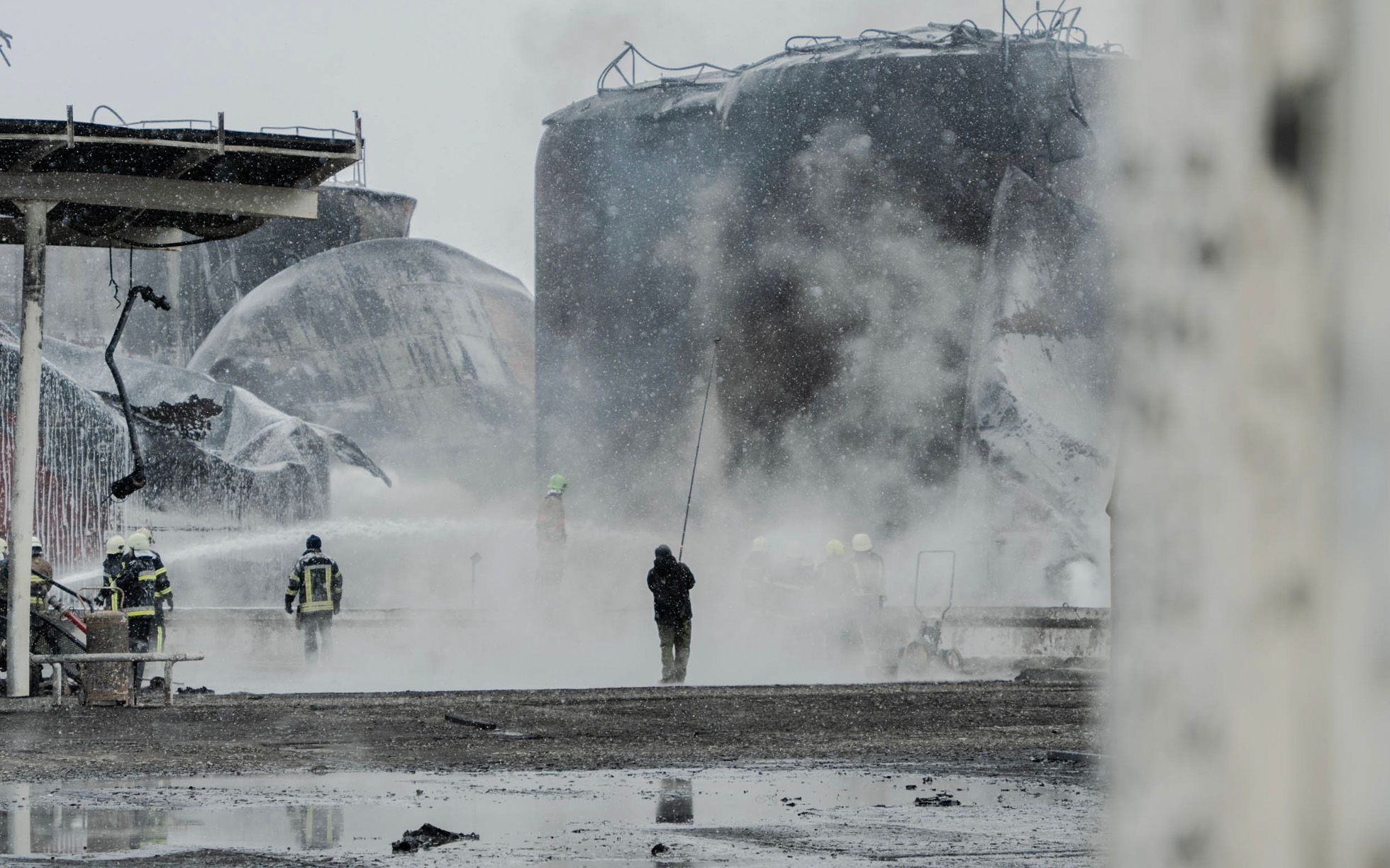 В ночь на 10 февраля российские войска атаковали беспилотниками «Шахед» нефтебазу в Немышлянском районе Харькова. Из-за топлива, которое вытекло на улицу после удара, начался пожар, он охватил несколько жилых кварталов.