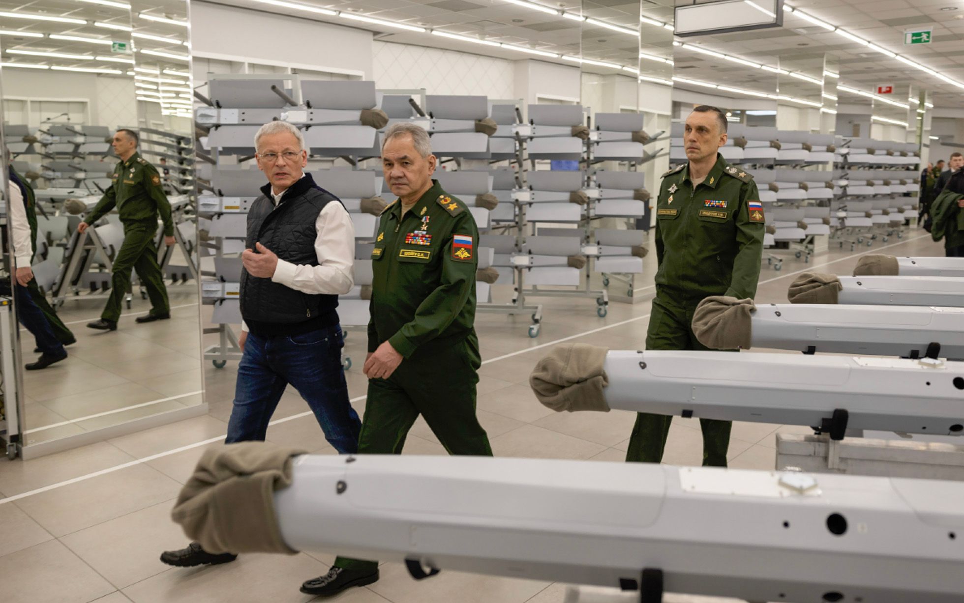 Сергей Шойгу на заводе по производству дронов
