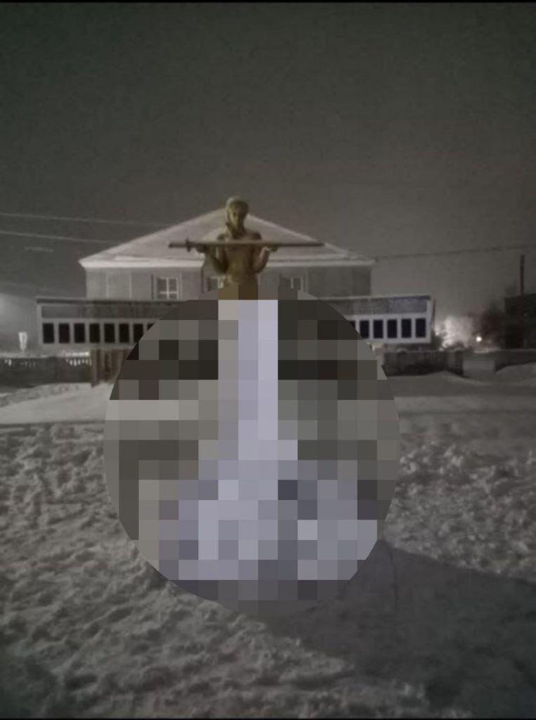 На Алтае школьники слепили снежный фаллос возле мемориала погибшим в Великой отечественной войне. Подростков вызвали в полицию