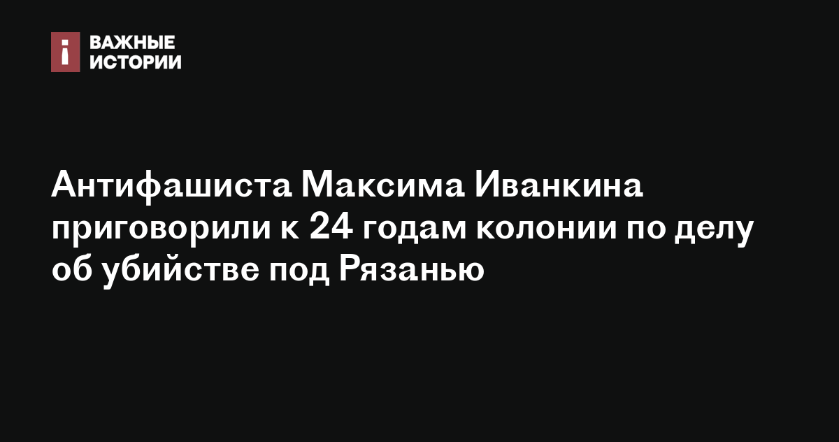 Антифашиста Максима Иванкина приговорили к 24 годам колонии по делу об убийстве под Рязанью. Об этом сообщает РИА Новости.