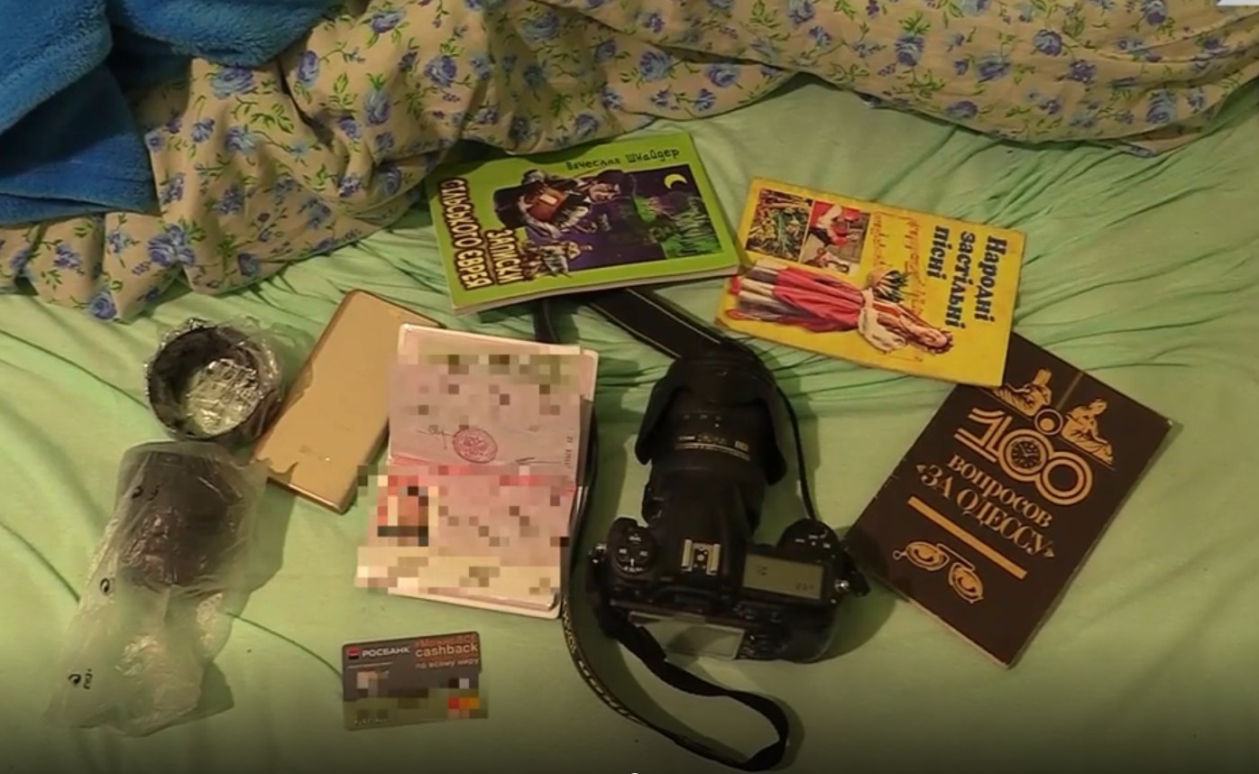 Пресс-служба управления ФСБ по Калининградской области также опубликовала видео с задержанием и обыском у фигуранта дела. В ролике показано, как силовики вламываются домой к мужчине и надевают на него наручники. В конце видео также демонстрируются вещдоки, найденные при обыске, — среди них книги «Народнi застiльнi пiснi» («Народные застольные песни»), «Записки ciльского еврея» («Записки сельского еврея») и «100 вопросов "За Одессу"».