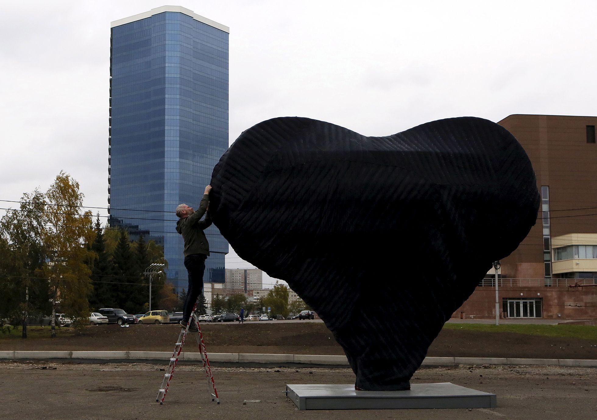 В 2013-м Слонову 43 года, он — один из заметных участников художественного течения, которое называет себя «сибирским ироническим концептуализмом». Их коллективная выставка «Соединенные штаты Сибири» год назад прошла в Перми, а теперь гастролирует в Новосибирске, Москве и Петербурге и вот-вот поедет в Томск, работы Слонова занимают на ней видное место. А еще Слонов — автор красноярской «Родины-матери» у музейного центра «Площадь мира». Это мемориал советским женщинам, прошедшим Вторую мировую войну, — пятиметровая железная матрешка без лица, ржавая, вся в заплатах и похожая на заброшенную военную технику. Скульптура, радикально непохожая на другие военные памятники путинских времен, появилась в Красноярске в 2010 году. Она простоит еще поразительно долго — до отъезда на бессрочную реставрацию в 2023-м.