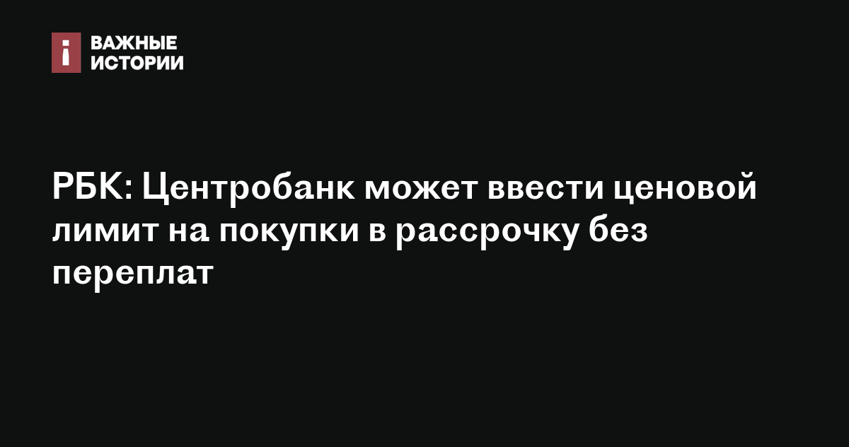 РБК: Центробанк может ввести ценовой лимит на покупки в рассрочку без переплат